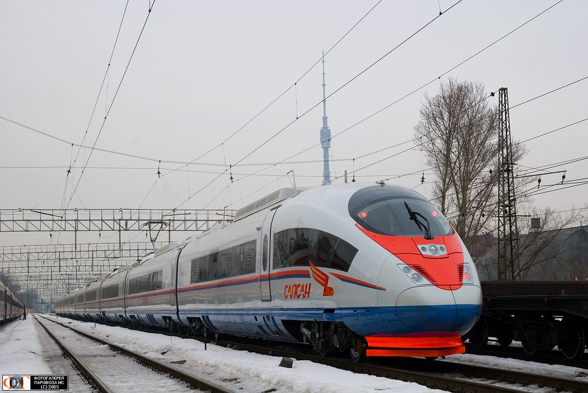 | Электропоезд "Сапсан" Velaro RUS №1 прибыл на ст. Москва-Товарная ОЖД после презентации на Ленинградском вокзале, Москва Автор: Баландин Д. | Фото сделано 15.III.2009, опубликовано 16.III.2009.