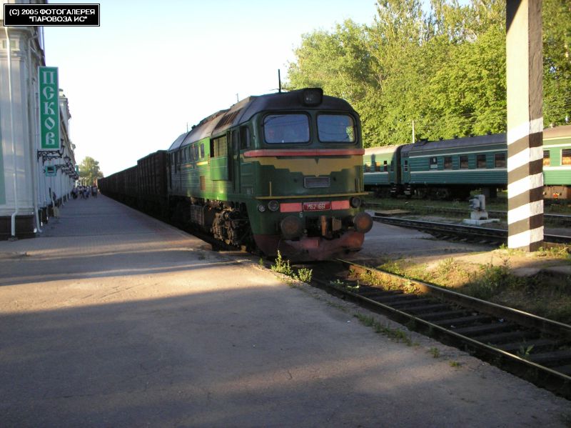 | Тепловоз М62-1661 { M62-1661 diesel locomotive }, ст. Псков { Pskov station }, Псковская обл. Автор: Гуля Алексей | Фото сделано 9.VII.2005, опубликовано 8.VIII.2005.