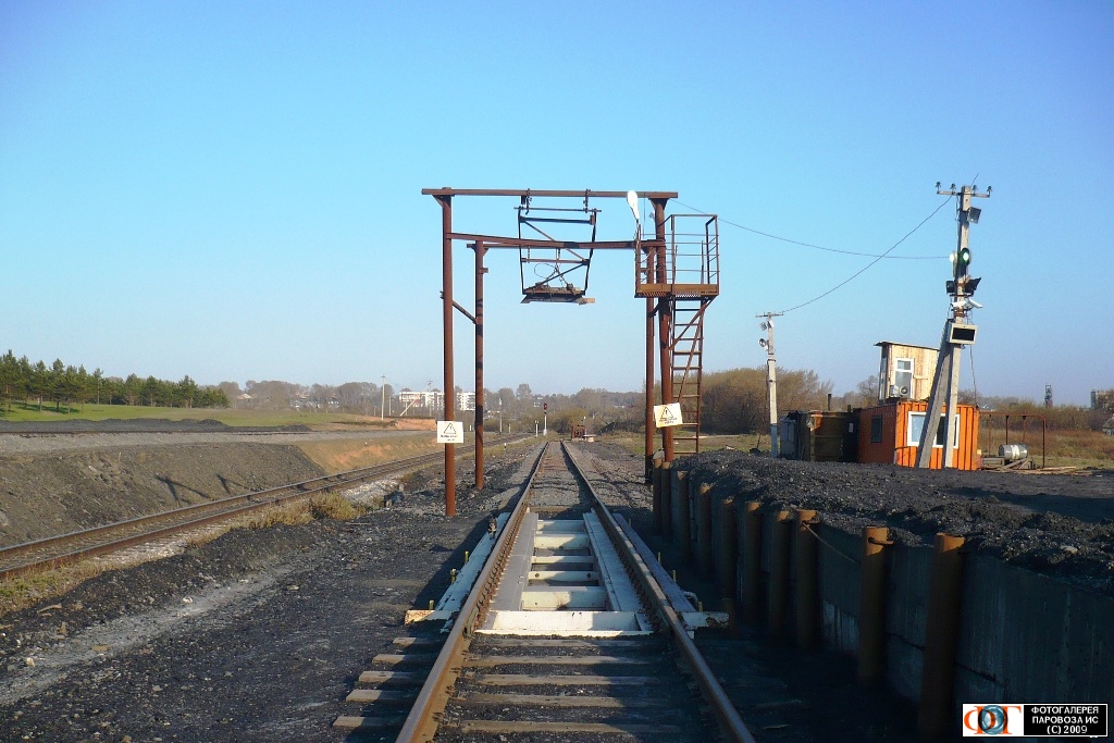 | Весы и приспособления для замера габаритов и разравнивание конуса угля в вагонах. Подъездные пути к ст. Полысаево, Зап-Сиб.ж. д, Кемеровская обл. Автор: *****Андрей***** | Фото сделано 7.V.2009, опубликовано 14.V.2009.
