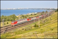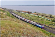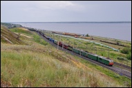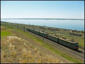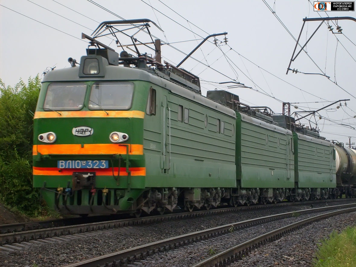 | Электровоз ВЛ10УК-323 с грузовым поездом, перегон Октябрьск – Сызрань-I, Самарская обл. Автор: Сташенко Е. | Фото сделано 6.VIII.2008, опубликовано 21.VI.2009.