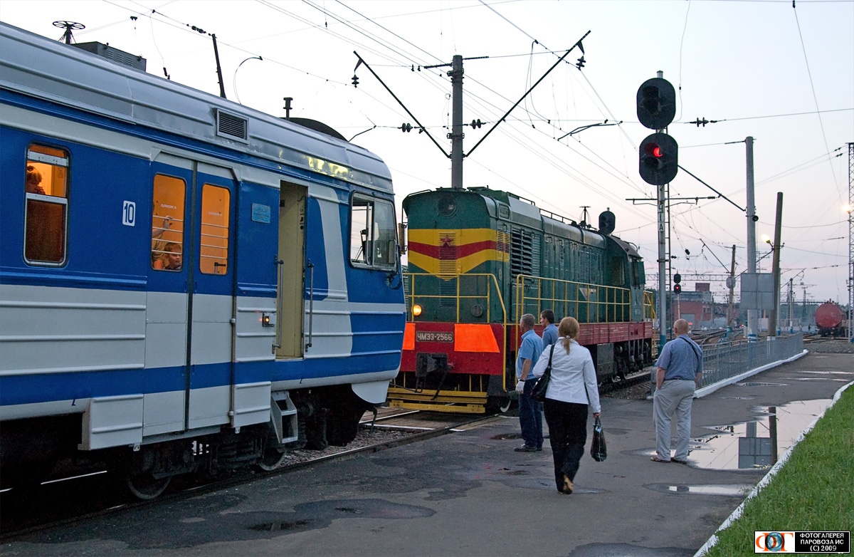Тепловоз ЧМЭ3-2566 прицепляется с электропоезду ЭД4МК-0112 для следования до ст. Балакирево, ст. Александров-I, Владимирская обл.