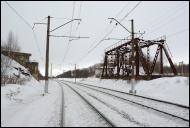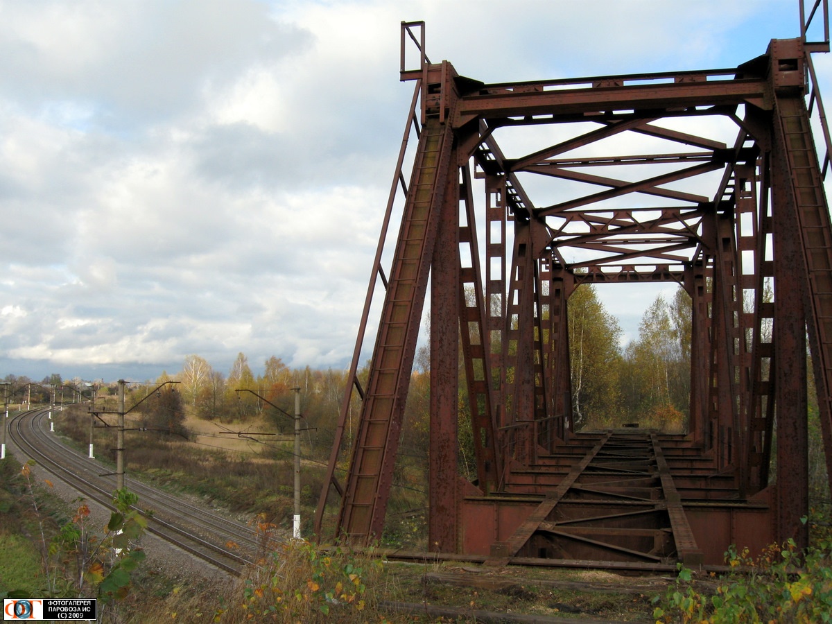 Мост разобранного подъездного пути от ст. Щёкино и главный ход Москва - Курск, вид в сторону чётной горловины ст. Щёкино, Тульская обл.