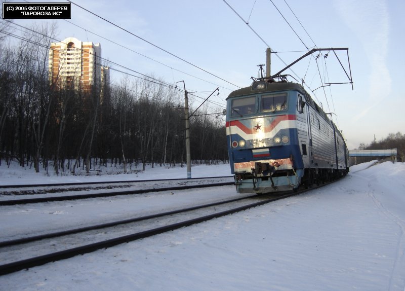 | Электровоз ЧС7-018 { ChS7-018 electric locomotive }, перегон Москва-Сортировочная-Киевская - Очаково-I, между ст. Москва-Сортировочная-Киевская и пл. Матвеевская, Москва Автор: Максимов Юрий | Фото сделано 3.I.2006, опубликовано 9.I.2006.