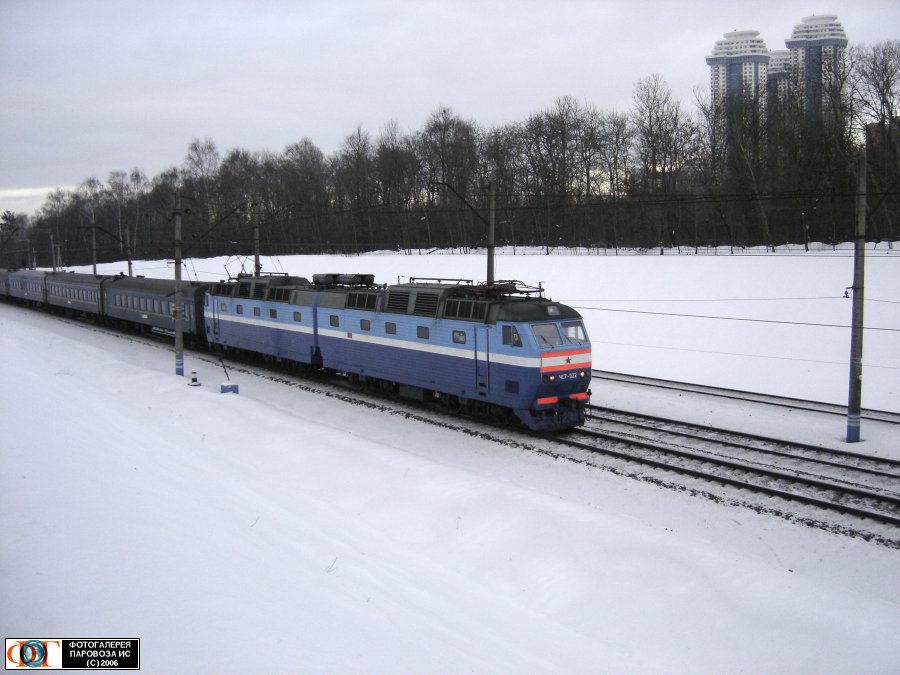 | Электровоз ЧС7-022 { ChS7-022 electric locomotive }, перегон Москва-Сортировочная-Киевская - Очаково-I, между ст. Москва-Сортировочная-Киевская и пл. Матвеевская, Москва Автор: Максимов Юрий | Фото сделано 3.I.2006, опубликовано 20.I.2006.