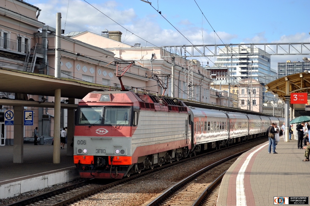 | Электровоз ЭП10-006 с поездом "Буревестник" на ст. Москва-Пасс.-Курская (Курский вокзал), Москва Автор: Фёдор Саенко | Фото сделано 20.VIII.2010, опубликовано 22.VIII.2010.