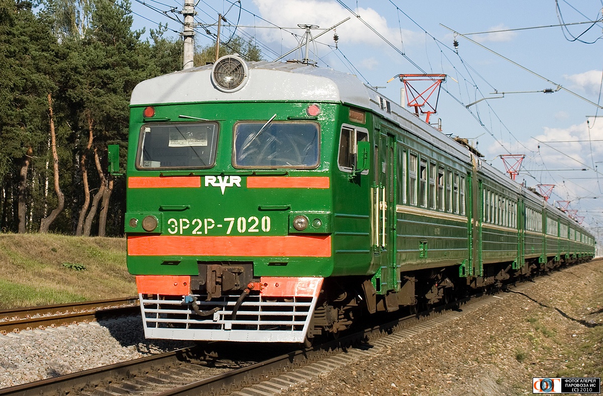 | Электропоезд ЭР2Р-7020, перегон Железнодорожная - Купавна, Московская обл. Автор: Анатолий Нагорнов | Фото сделано 5.IX.2010, опубликовано 9.IX.2010.