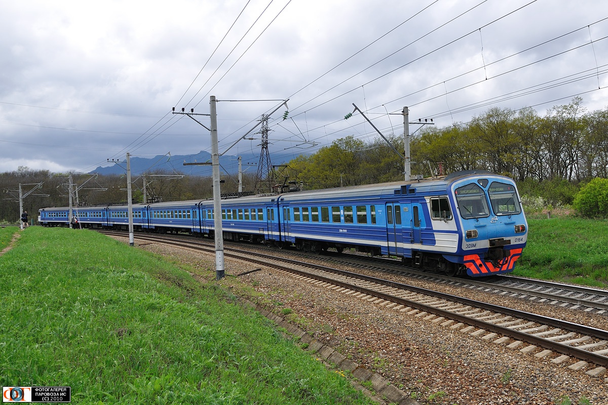 | Электропоезд ЭД9М-0164 сообщением Минеральные Воды - Кисловодск на перегоне Минеральные Воды - Бештау, Ставропольский край Автор: GoArt | Фото сделано 24.IV.2010, опубликовано 13.X.2010.
