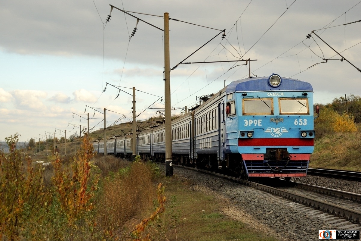 Электропоезд ЭР9Е-653 "Платан" на перегоне Березовка - Рауховка, Одесская ж.д, Одесская обл.