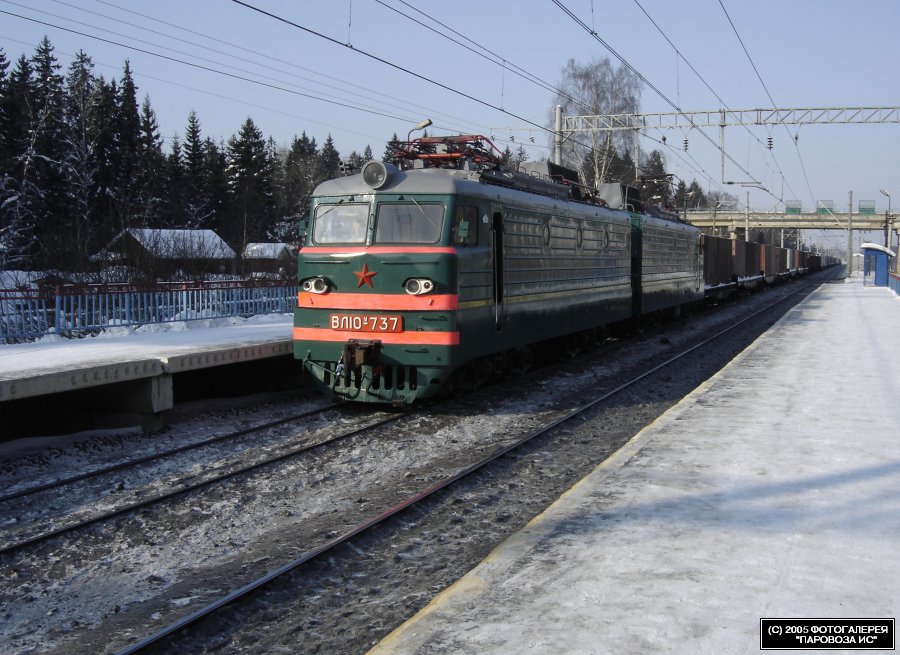 | Электровоз ВЛ10У-737 { VL10U-737 electric locomotive }, о.п. Радищево { Radishchevo station }, Московская обл. Автор: Максимов Юрий | Фото сделано 15.II.2006, опубликовано 23.II.2006.