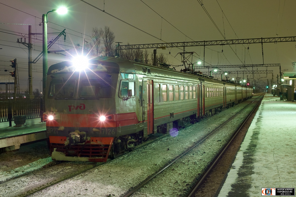 | Электропоезд ЭР2Т-7126 на ст. Шушары, Санкт-Петербург Автор: Лиша | Фото сделано 9.I.2011, опубликовано 16.I.2011.