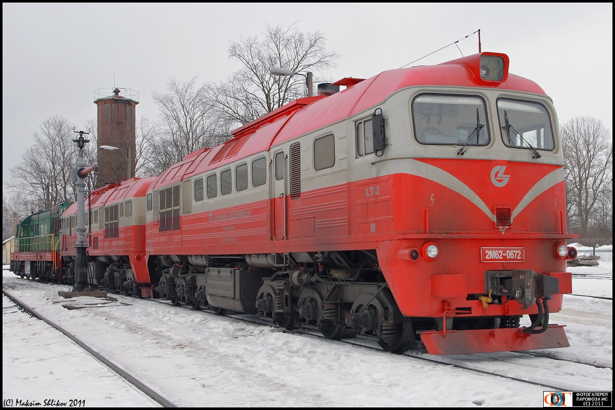 | Тепловоз 2М62-0672М, депо Елгава, Латвия Автор: М.Шлыков | Фото сделано 2.III.2011, опубликовано 3.III.2011.