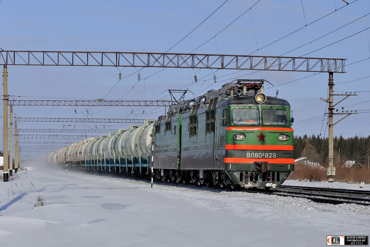 | Электровоз ВЛ80Т-829 с грузовым поездом, о.п. Лухтонга, перегон Ерцево - Явенга СЕВ.ЖД., Архангельская обл. Автор: Alexander495. | Фото сделано 7.III.2011, опубликовано 10.IV.2011.