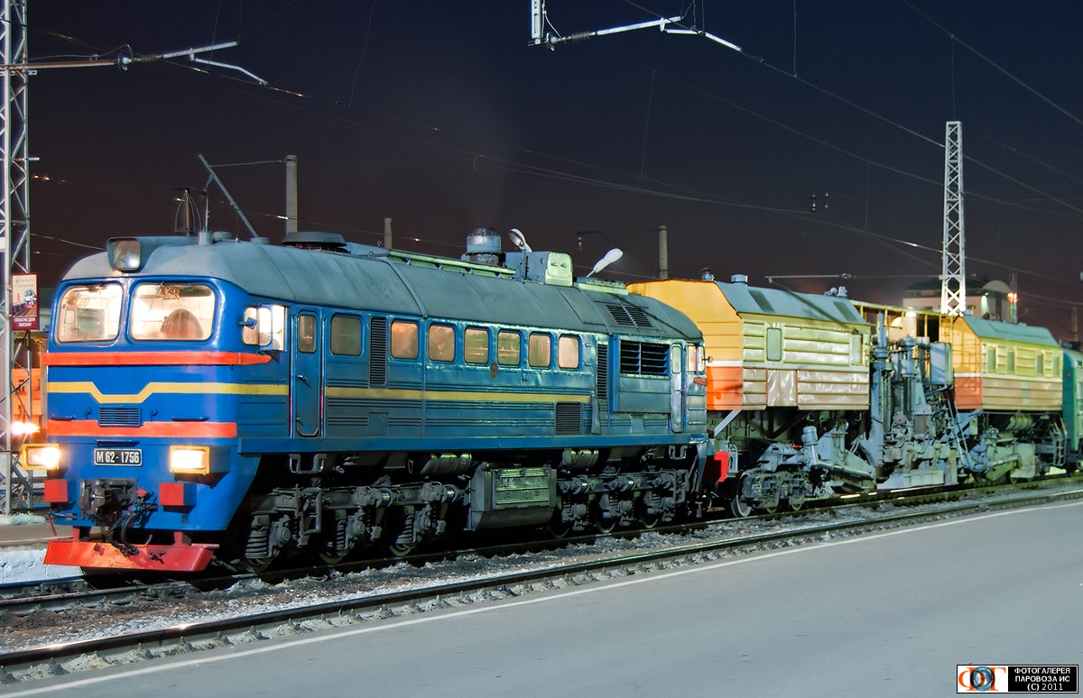 | Тепловоз М62-1756 (ДМ62-1756) и путевая машина ВПО3000 на станции Орёл, Орловская обл. Автор: foboz | Фото сделано 27.IV.2011, опубликовано 29.IV.2011.
