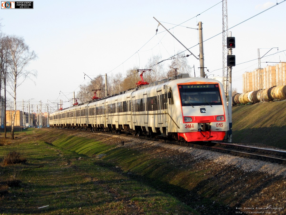 | Электропоезд ЭМ4-015 на ст. Лосиноостровская, Москва Автор: Денис Еськов | Фото сделано 23.IV.2011, опубликовано 21.V.2011.
