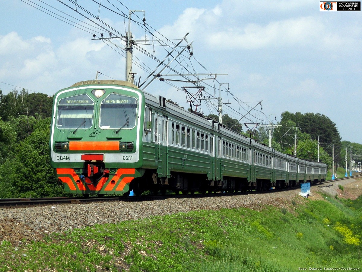 | Электропоезд ЭД4М-0211 на перегоне Солнечная - Внуково, Московская обл. Автор: Денис Еськов | Фото сделано 29.V.2011, опубликовано 20.VI.2011.