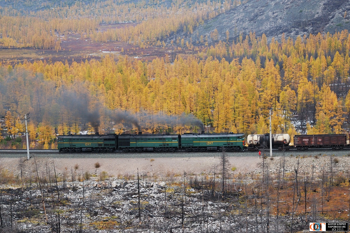 | Тепловоз-толкач 3ТЭ10М-1397 на перегоне Мурурин - Олонгдо, БАМ, Забайкальский край Автор: Баландин Д. | Фото сделано 13.IX.2009, опубликовано 16.VII.2011.