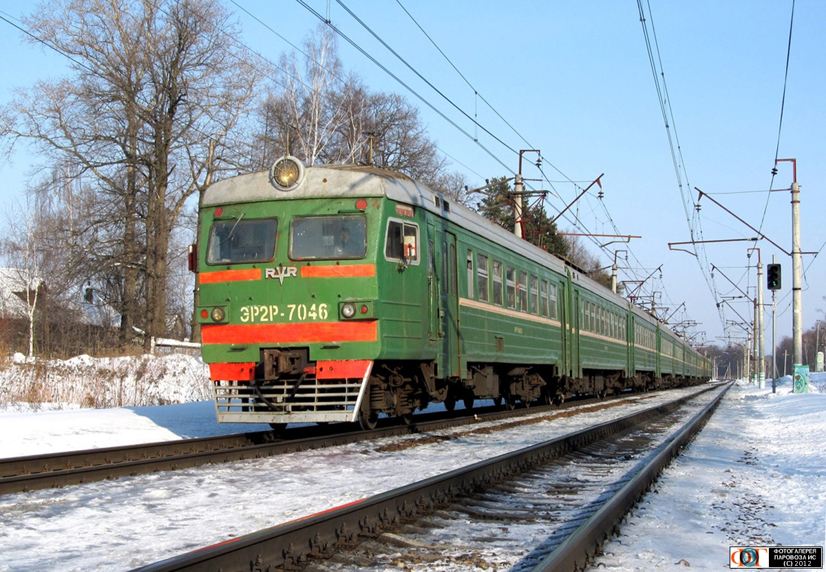 | Электропоезд ЭР2Р-7046 на перегоне Одинцово - Голицыно, Московская обл. Автор: Игорь Абросимов | Фото сделано 16.III.2012, опубликовано 26.V.2012.