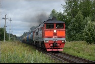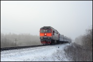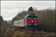 Тепловоз ТЭП70-0184 с поездом Великие Луки - СПб, перегон Бахарево - Батецкая, Новгородская обл.