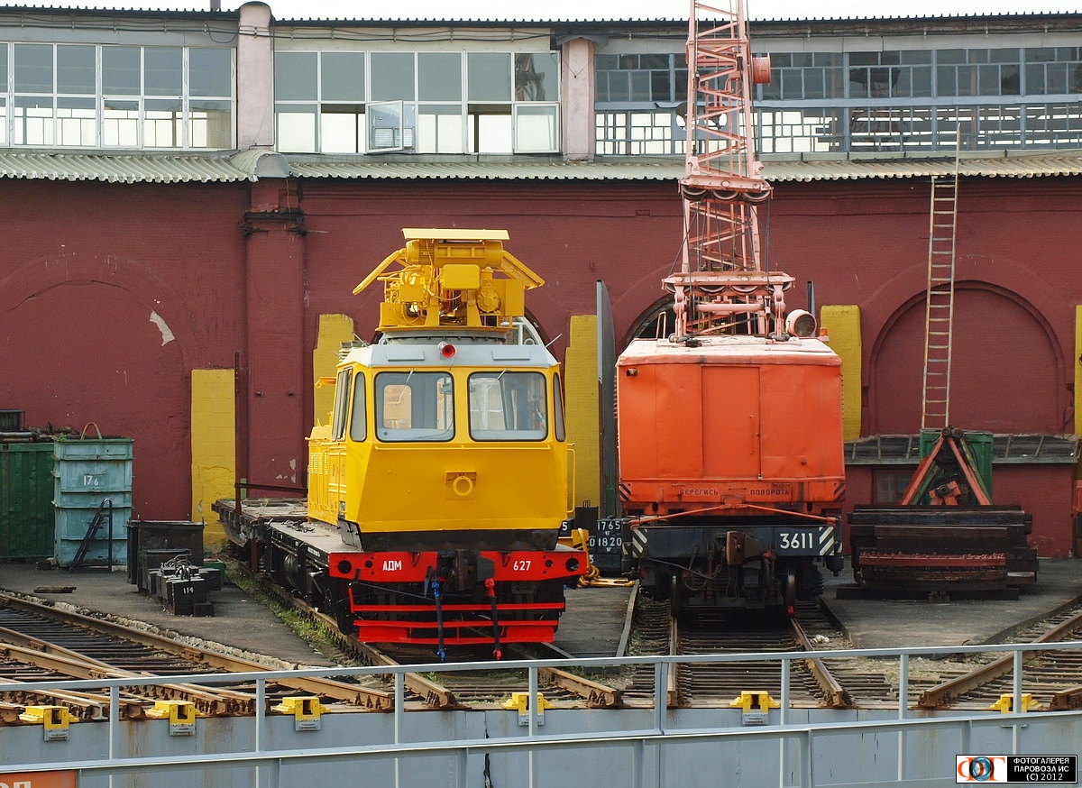 | Автомотриса АДМ1-627 и кран КДЭ163-3611, депо Александров, Владимирская обл. Автор: Олег В. | Фото сделано 26.VII.2012, опубликовано 1.VIII.2012.