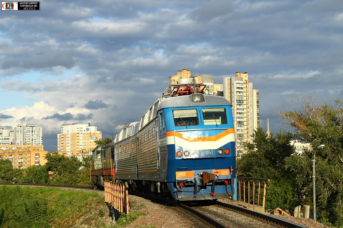 | Электровоз ЧС7-041 и тепловоз ЧМЭ3-6159 на соединительной ветви ст. Пресня - ст. Москва-Тов.-Смоленская, Москва Автор: Дмитрий Зю. | Фото сделано 23.VIII.2012, опубликовано 31.VIII.2012.