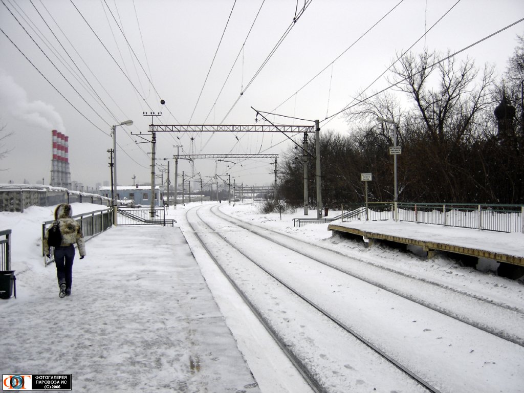 | Платформа Трикотажная { Trikotazhnaya platform }, перегон Тушино - Павшино, Москва Автор: Максимов Юрий | Фото сделано 12.III.2006, опубликовано 25.VII.2006.