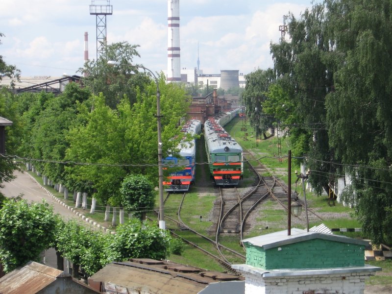 | Электропоезда ЭР2-1316 и ЭР2Р-7020 на приемо-сдаточных путях Московского ЛРЗ, ст. Перово, Московская обл. Автор: Ammendorf | Фото сделано 18.VI.2006, опубликовано 19.VI.2006.