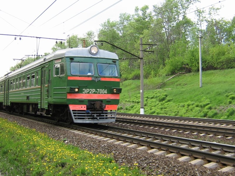 | Электропоезд ЭР2Р-7004, перегон Реутово - Железнодорожная, Московская обл. Автор: Ammendorf | Фото сделано 23.V.2006, опубликовано 19.VI.2006.