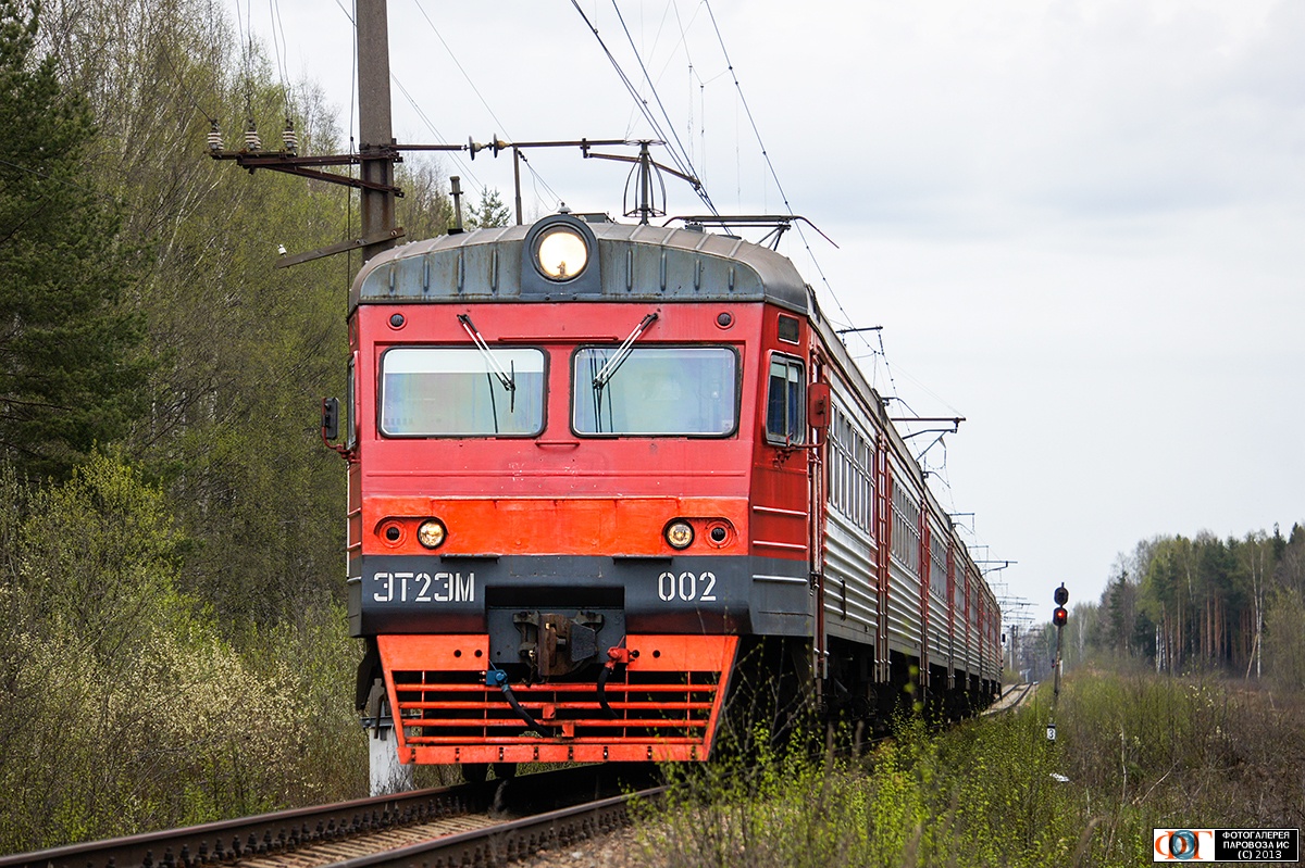 | Электропоезд ЭТ2ЭМ-002 на станции Мельничный Ручей, Ленинградская обл. Автор: Левин Д. (DODGER) | Фото сделано 9.V.2013, опубликовано 11.V.2013.