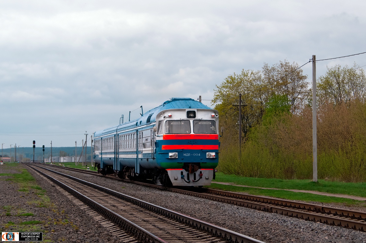 | Дизель-поезд МДП-004 на ст. Волковыск-Город Белорусской железной дороги, Гродненская обл. Автор: Прок@зник | Фото сделано 4.V.2013, опубликовано 14.V.2013.
