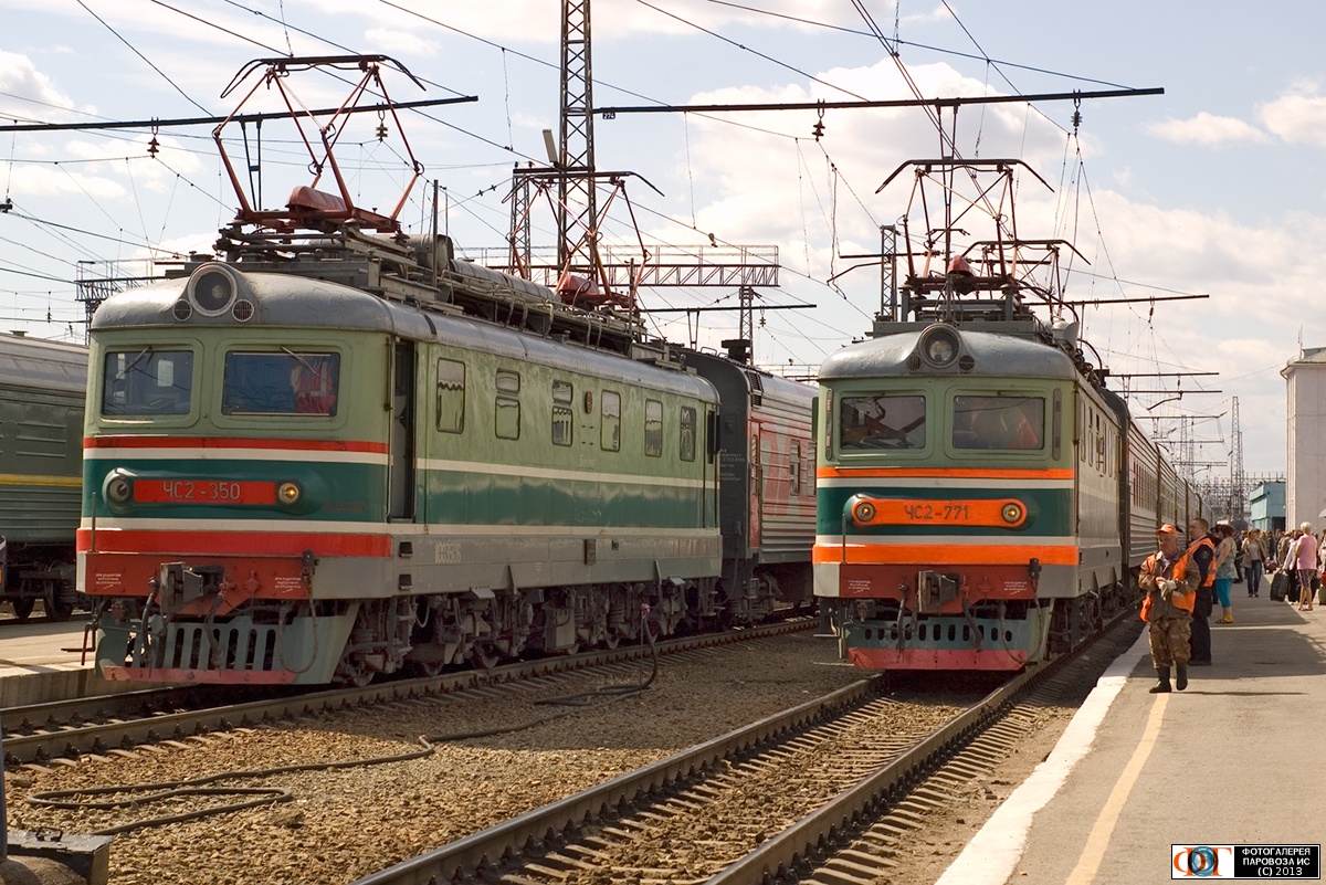 | Электровозы ЧС2-350 и ЧС2-771, станция Пермь-II, Пермский край Автор: Юрий Е. | Фото сделано 13.V.2013, опубликовано 23.V.2013.