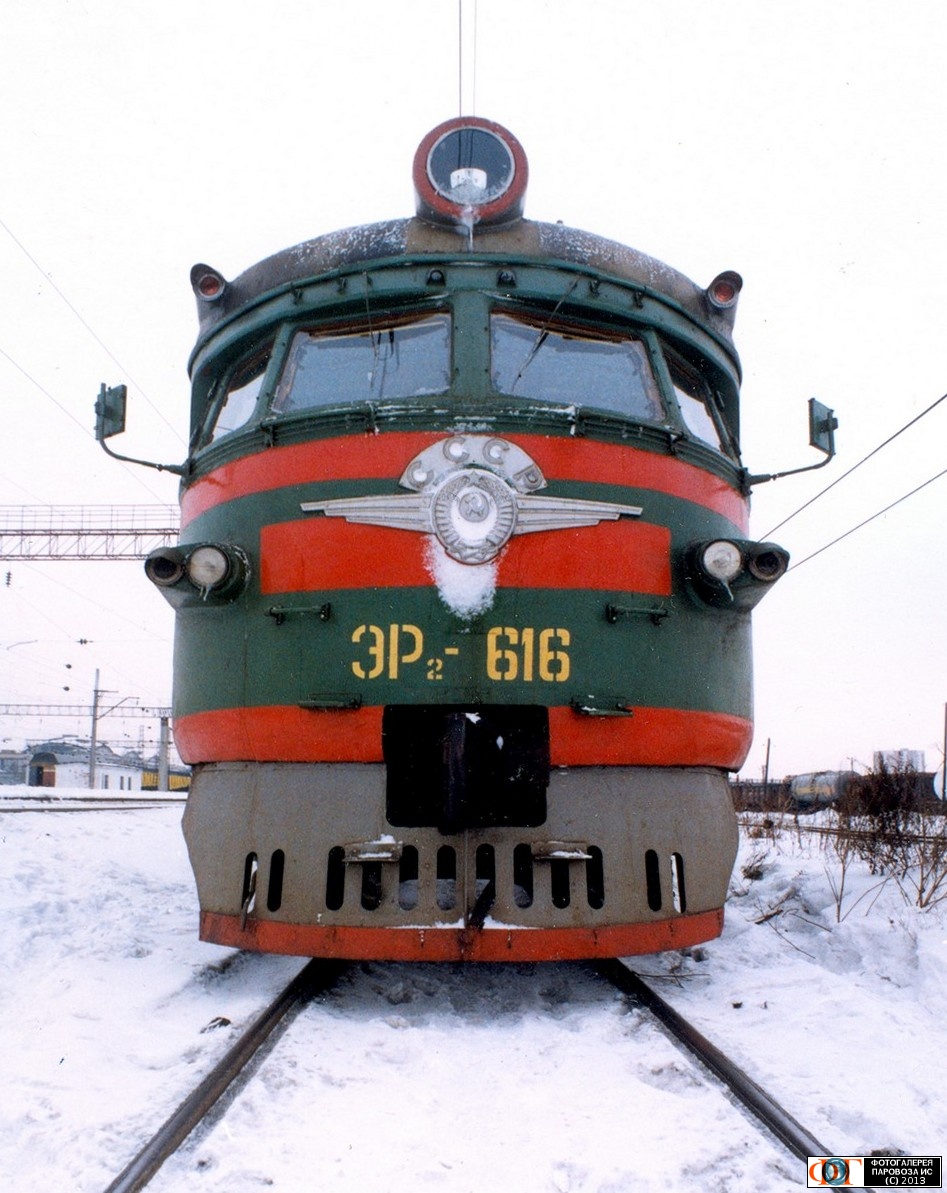 | Вид головного вагона электропоезда ЭР2-616. Ст. Челябинск-Главный, Челябинская обл. Автор: Егор Казаков (колл.) | Фото сделано 199?, опубликовано 16.XII.2013.