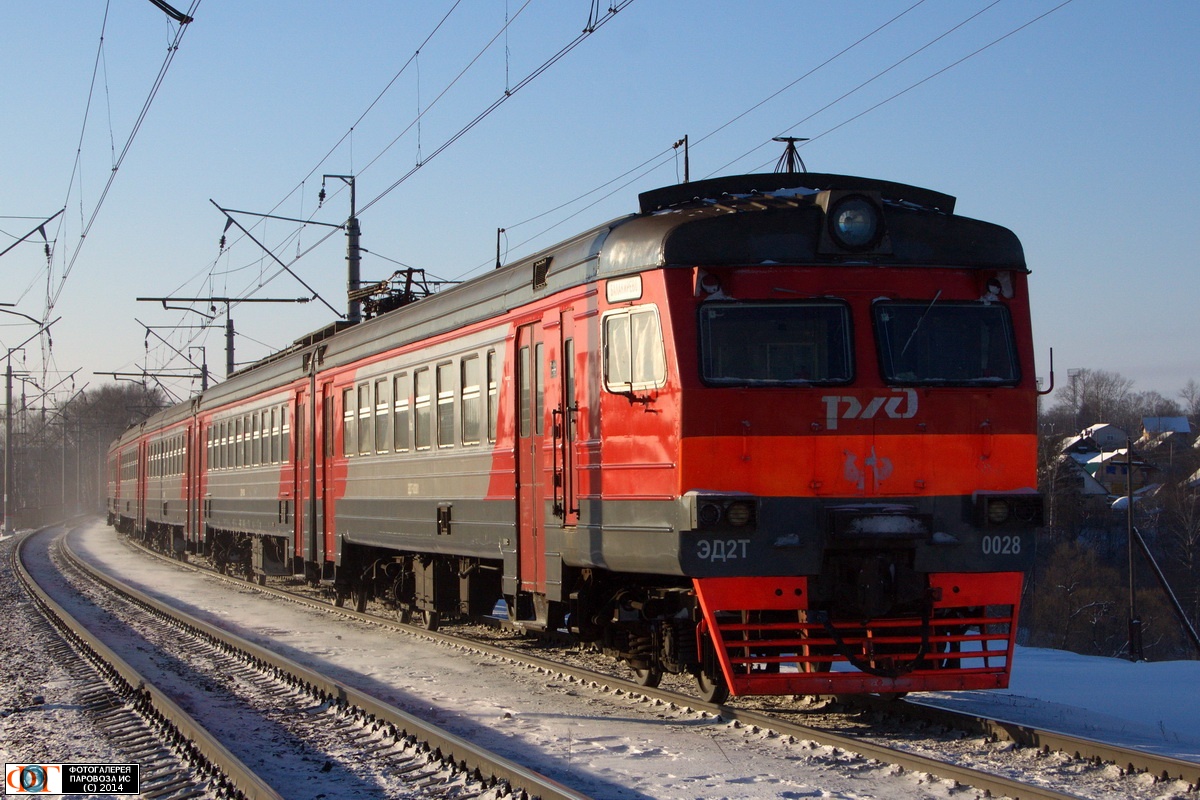 | Электропоезд ЭД2Т-0028, ведомый тепловозами ЧМЭ3-984 и ЧМЭ3-2291, на перегоне Балакирево - Александров, Владимирская обл. Автор: Анатолий Клубков | Фото сделано 19.I.2014, опубликовано 26.I.2014.