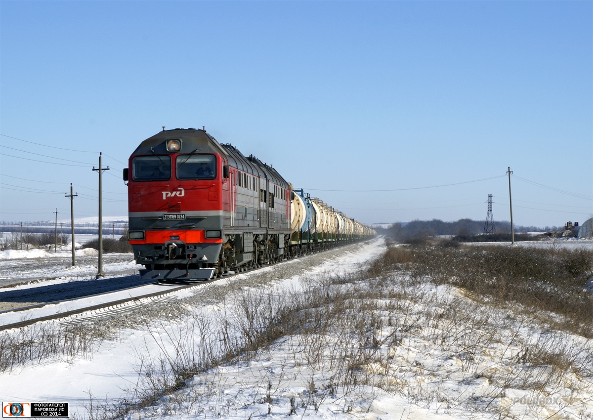 | Тепловоз 2ТЭ116У-0234 с грузовым поездом, перегон Юровский - Красная Стрела, участок Юровский - Кавказ, Краснодарский край Автор: Михаил Попов *RUS93* | Фото сделано 2.II.2014, опубликовано 3.II.2014.