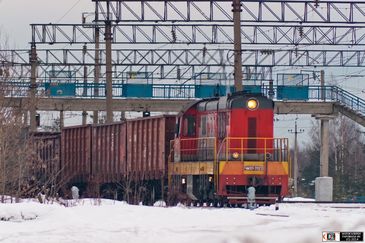 | Тепловоз ЧМЭ3-2023 на манёврах по ст. Нея Северной ж.д., Костромская обл. Автор: Прок@зник | Фото сделано 2.II.2014, опубликовано 10.II.2014.