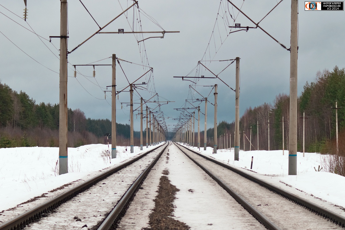 | Вид на перегон Унжа - Шекшема Северной ж.д., Костромская обл. Автор: Прок@зник | Фото сделано 19.II.2014, опубликовано 24.II.2014.