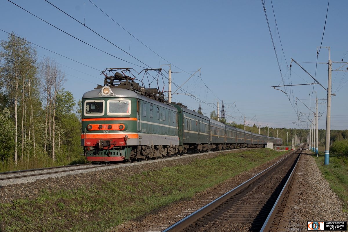 | Электровоз ЧС2-920 с поездом, перегон Курья - Оверята, Пермский край Автор: Юрий Е. | Фото сделано 18.V.2014, опубликовано 20.V.2014.