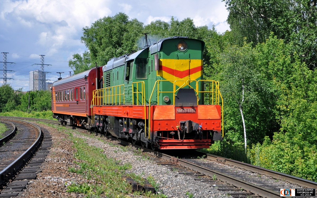 | Тепловоз ЧМЭ3-4494, перегон Лосиноостровская - Белокаменная, МОЖД, Москва Автор: Островский Кирилл | Фото сделано 26.VI.2014, опубликовано 28.VI.2014.