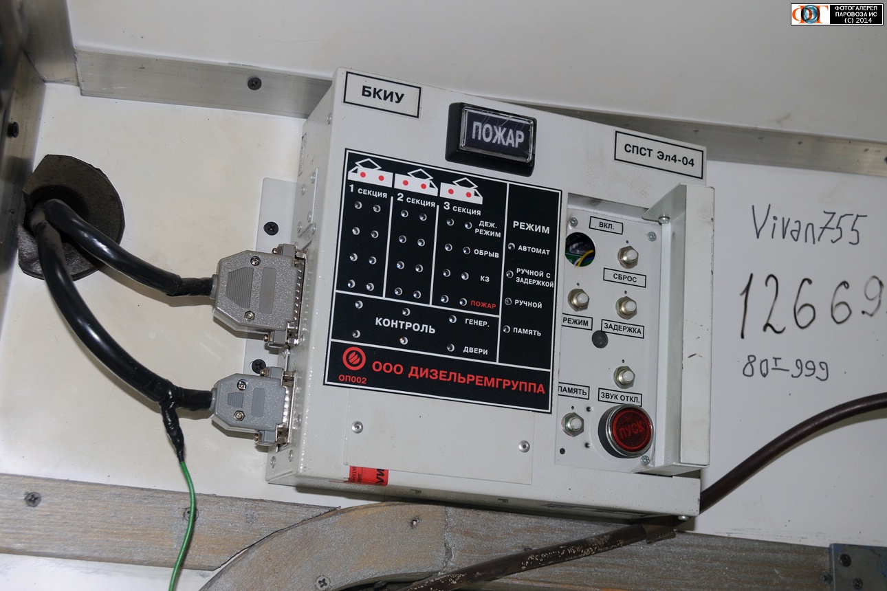 | Блок контроля, индикации и управления (БКИУ) системы пожаротушения СПСТ Эл4-04, электровоз ВЛ80Т-999, Карелия Автор: Vivan755 | Фото сделано VII.2014, опубликовано 3.IX.2014.