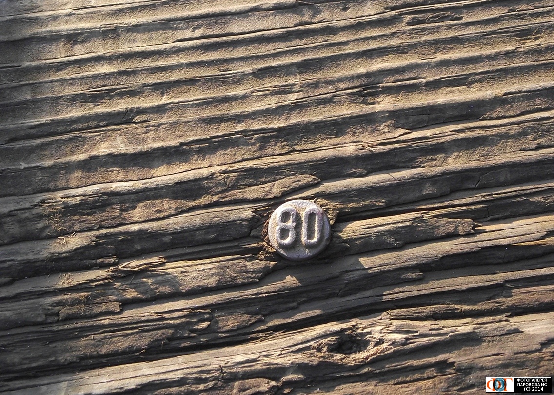 - 2. точнее год укладки шпалы в путь. в данном случае 1980 год. мне попадались рабочие шпалы на подъездном пути с годами, 64, 67, 73. причем 60 года типа "зубной коронки" с двумя клыками, а 70 просто гвоздь. -- tyghnbvol