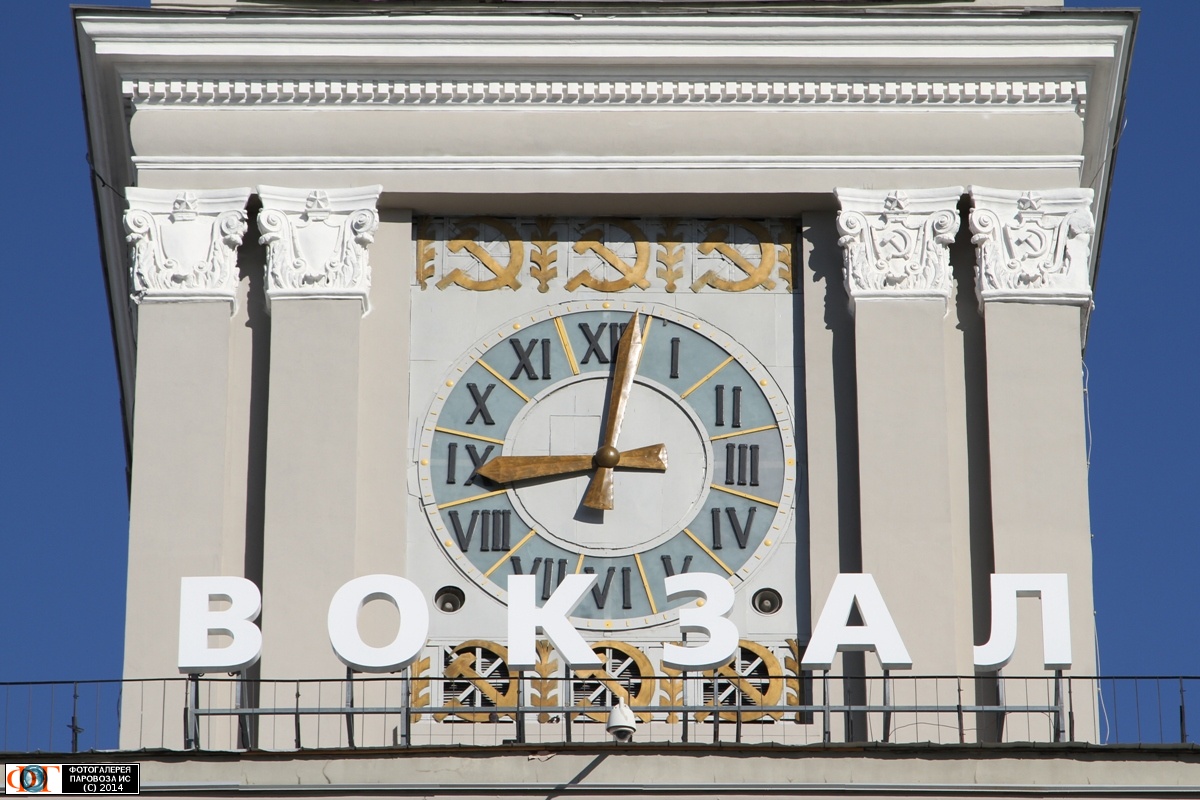 | Часы на здании вокзала станции Волгоград-I, Волгоградская обл. Автор: Максимов Юрий | Фото сделано 7.IX.2014, опубликовано 4.X.2014.