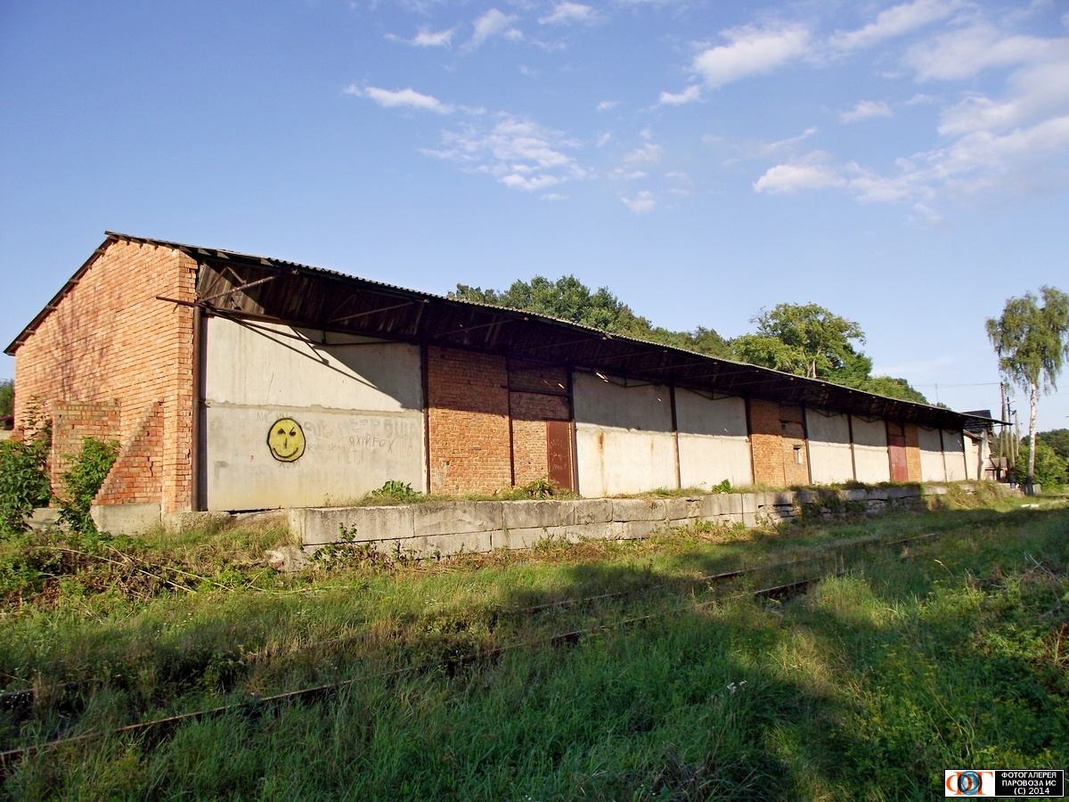 | Склад (бывший) с разгрузочно-погрузочной рампой на о.п. Городенко-Город (Городенко-Мисто), Ивано-Франковская обл. Автор: Шеремета Руслан | Фото сделано 25.VIII.2014, опубликовано 27.XI.2014.