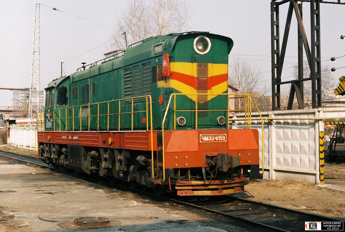 | Тепловоз ЧМЭ3-6159 в локомотивном депо Подмосковная, Москва Автор: Дмитрий Закутный | Фото сделано IV.2005, опубликовано 24.XII.2014.