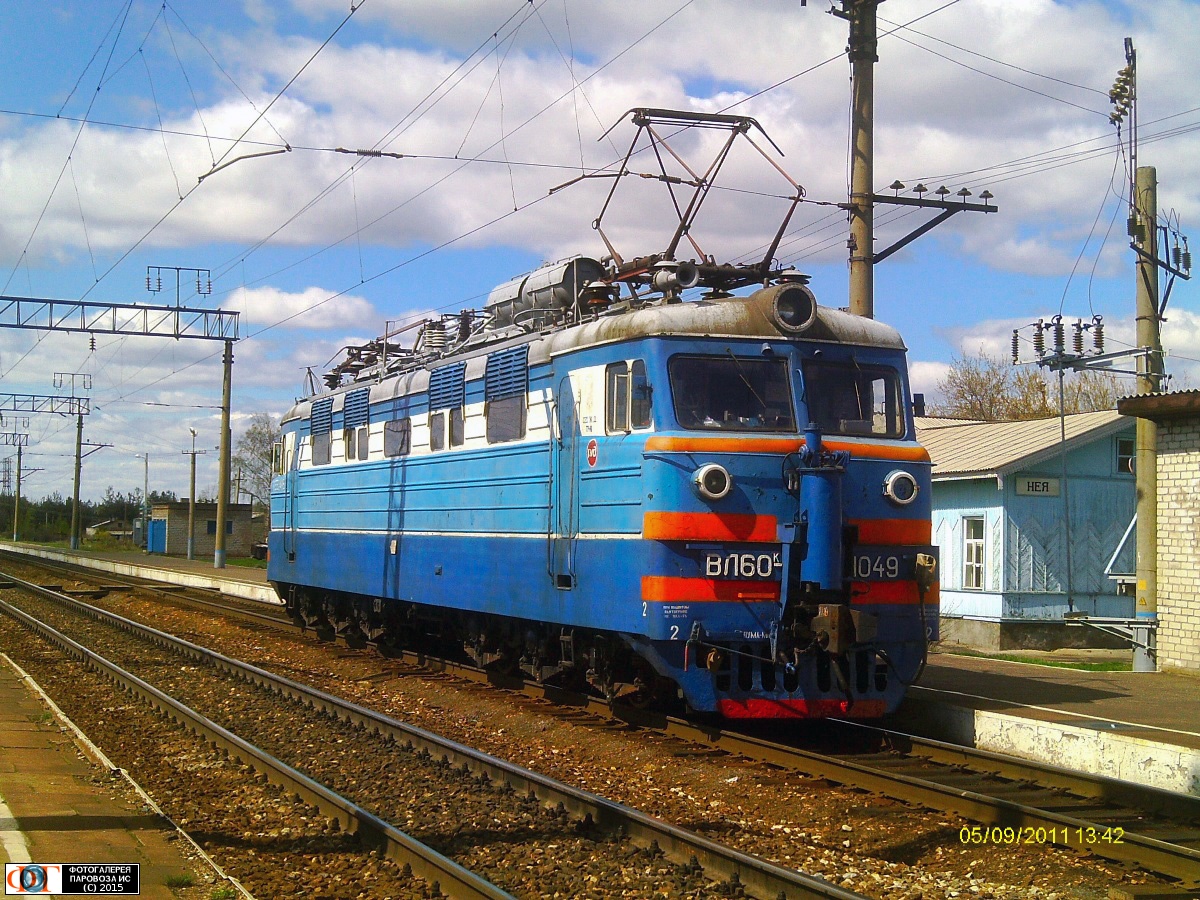 | Электровоз ВЛ60К-1049 на ст. Нея Северной ж.д., Костромская обл. Автор: Прок@зник | Фото сделано 9.V.2011, опубликовано 9.I.2015.