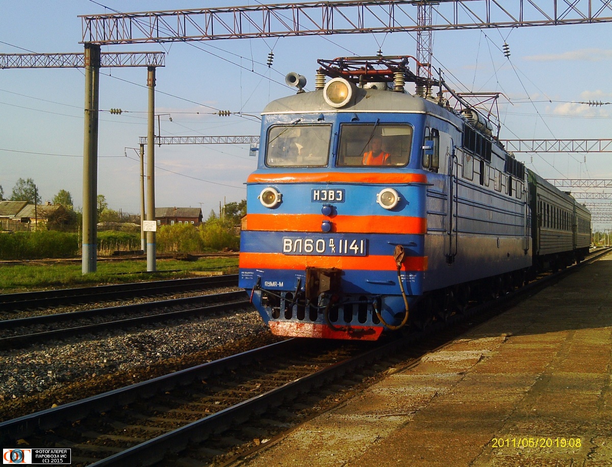 | Электровоз ВЛ60ПК-1141 в голове пригородного поезда, станция Мантурово, Костромская обл. Автор: Прок@зник | Фото сделано 20.V.2011, опубликовано 25.I.2015.