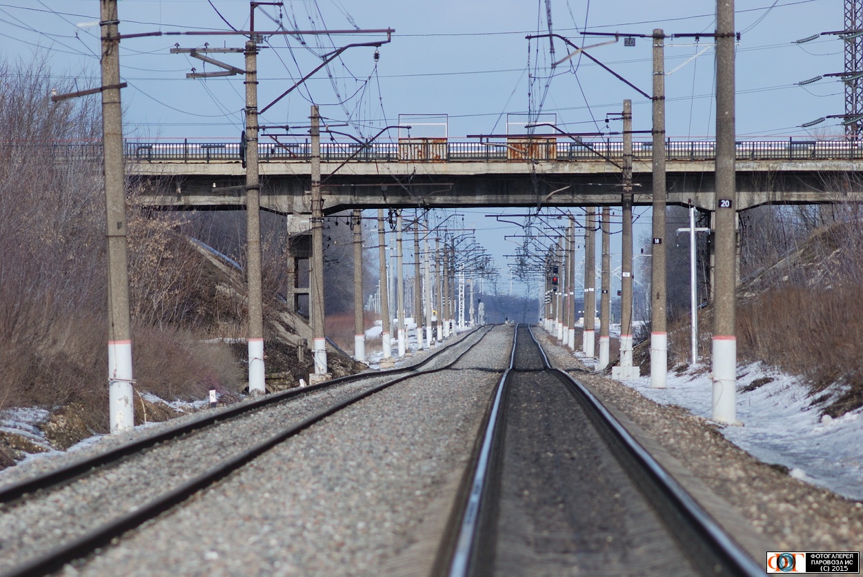| Уменьшение высоты балластной призмы под автомобильным путепроводом, перегон Щёкино - Казначеевка, Тульская обл. Автор: Корабельников А. | Фото сделано 7.III.2015, опубликовано 13.III.2015.