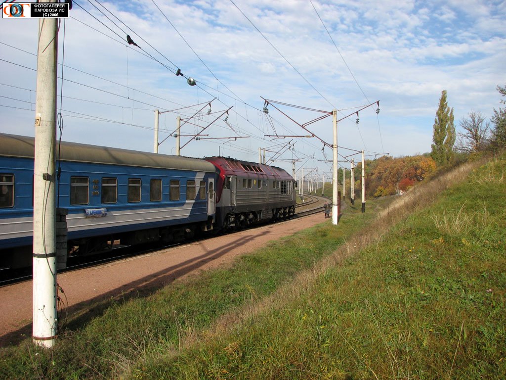 Тепловоз ТЭП150-001 { TEP150-001 diesel locomotive }, о.п. Терны { Terny platform }, Полтавская обл.