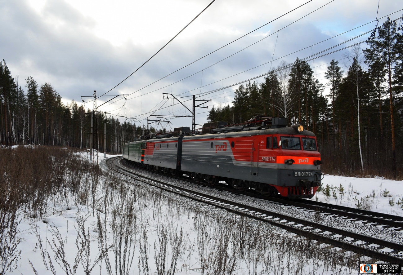| Электровоз ВЛ10У-774 на перегоне Флюсовая - Сыростан, Челябинская обл. Автор: sergey197474 | Фото сделано 7.XI.2015, опубликовано 21.XI.2015.