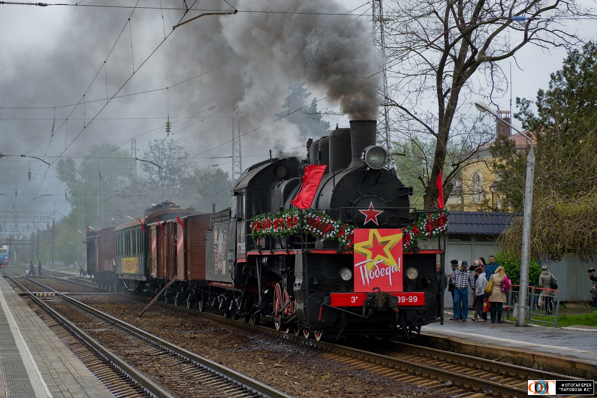 | Паровоз Эр739-99 с ретропоездом "Победа", станция Таганрог-Пассажирский (Таганрог-I), Ростовская обл. Автор: Кирилл | Фото сделано 21.IV.2016, опубликовано 22.IV.2016.