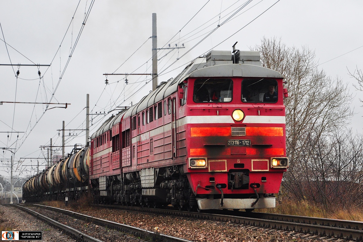| Тепловоз 2ТЭ116-1712"Трансойл" с грузовым поездом на перегоне Предпортовая - Автово, Санкт-Петербург Автор: Владик | Фото сделано 24.XI.2012, опубликовано 23.X.2016.