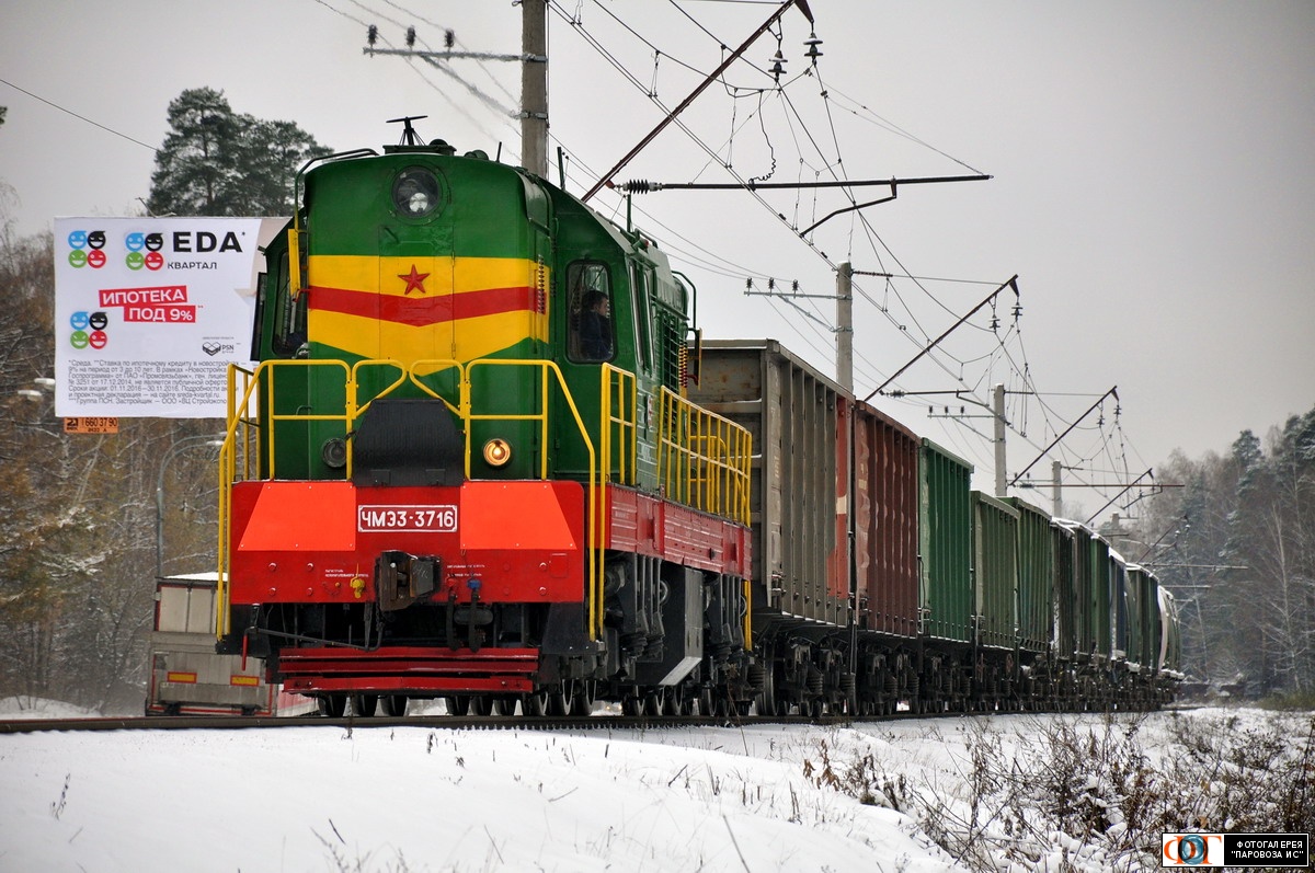 | Тепловоз ЧМЭ3-3716, парк Горенки, ст. Балашиха, Московская обл. Автор: Островский Кирилл | Фото сделано 5.XI.2016, опубликовано 8.XI.2016.
